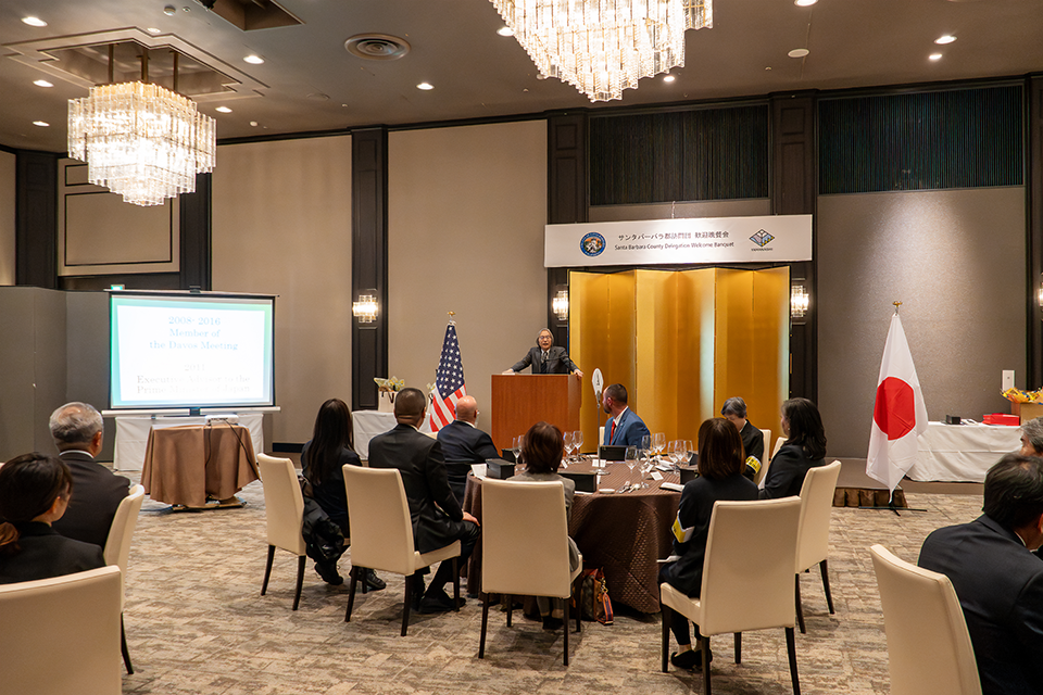 また、歓迎晩餐会では、サンタバーバラ郡理事会議長ボブ・ネルソン氏より祝辞が述べられ、今後の友好関係の更なる深化と連携強化について、強い期待が述べられました。